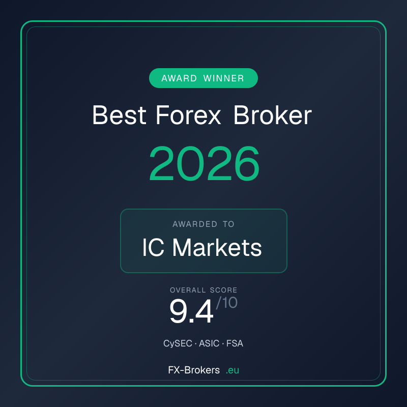 IC Markets earned the #1 slot in our 2026 EU broker rankings with an overall score of 9.4/10. That score is the composite of eight individually weighted dimensions — fees, platforms, regulation, execution, support, education, instruments, and raw execution quality — and IC Markets scored consistently above 8.0 on the majority of them.